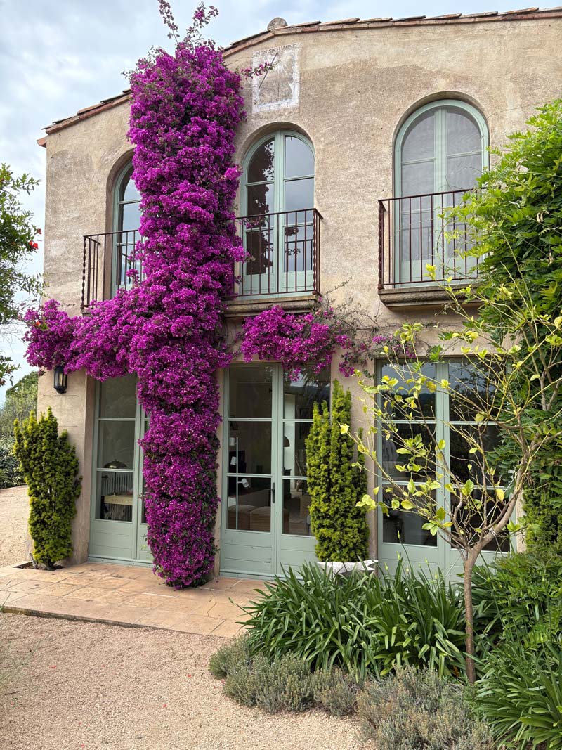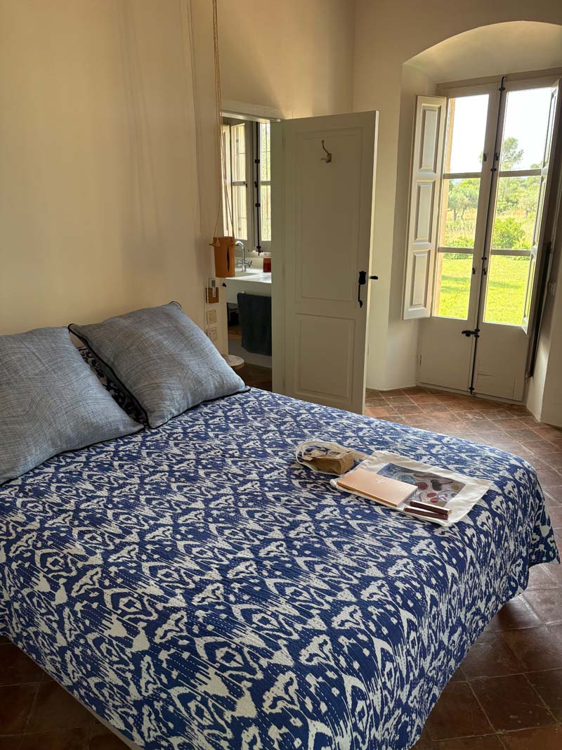 Die Fahrt führt durch sanfte Landschaft, Olivenhaine und kleine Dörfer, bis wir schließlich am Torre Ronsat ankommen, einem alten, charmanten Anwesen, das für sechs Tage unser Zuhause wird. Der Turm reicht mit seinem Blick bis zum Meer, Hortensien blühen im Hof, Olivenbäume spenden Schatten, im Garten wachsen Gemüse und Kräuter. Ein Pool liegt wie ein Versprechen in der Sonne, und mein Zimmer schaut hinaus auf Zitronenbäume. Schon beim Ankommen fühle ich mich zuhause.