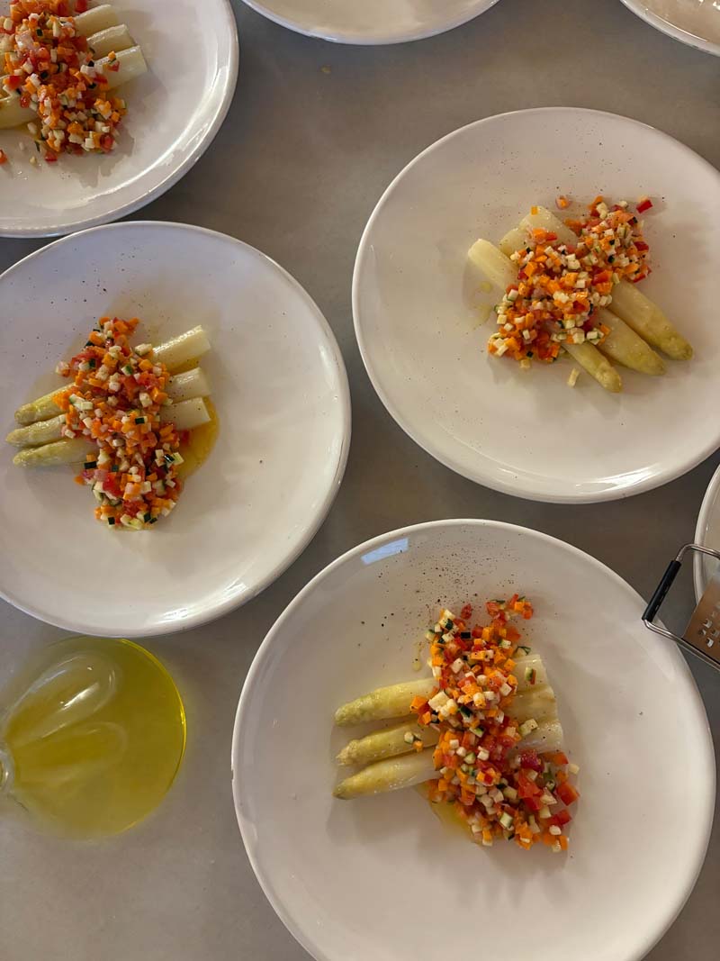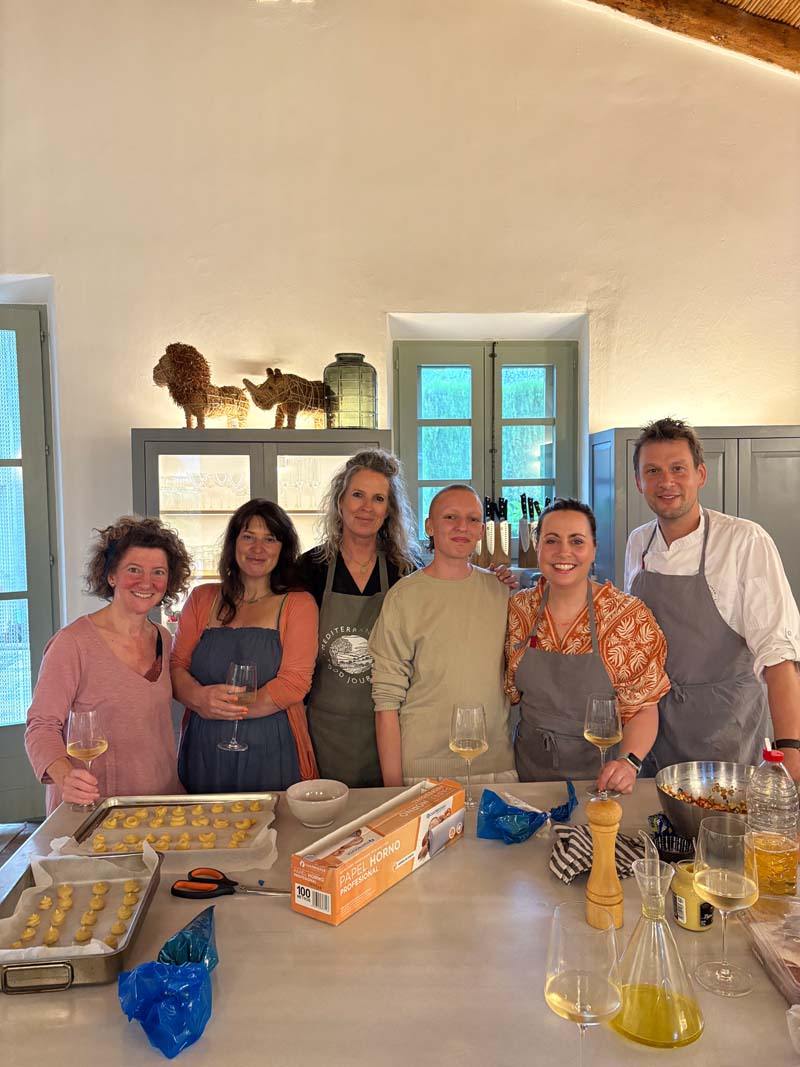 Am Abend beginnt auch schon der Auftakt: ein Empfang im Torre. Poppy reicht uns liebevoll zubereitete, noch warme Kroketten. Dazu ein Glas prickelnder Cava. Die Stimmung ist sofort herzlich, vertraut, fast so, als würde man alte Freunde wiedersehen. Noch weiß ich nicht, was mich erwartet, aber schon hier ahne ich, dass es nicht nur ums Kochen geht, sondern um eine Art Lebenskunst.