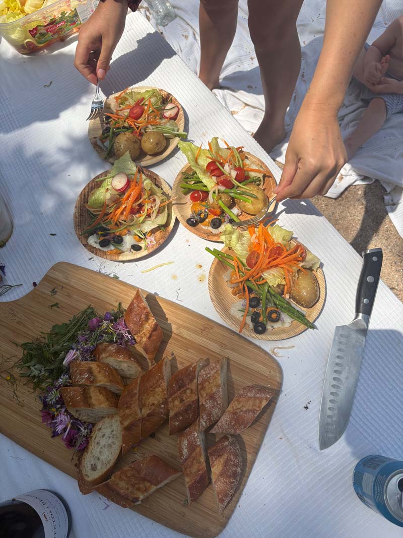 Auch das Strandpicknick bleibt unvergesslich. Rocco, der kleine Sohn von Steve und Suki, spielt im Sand mit einer Schüssel Paella. Irgendwann kippt er sie einfach um, und die ganze Paella landet im Sand. Niemand regt sich auf, alle lachen. Es fühlt sich an wie ein entspannter Familienausflug, bei dem Genuss und Gelassenheit Hand in Hand gehen.