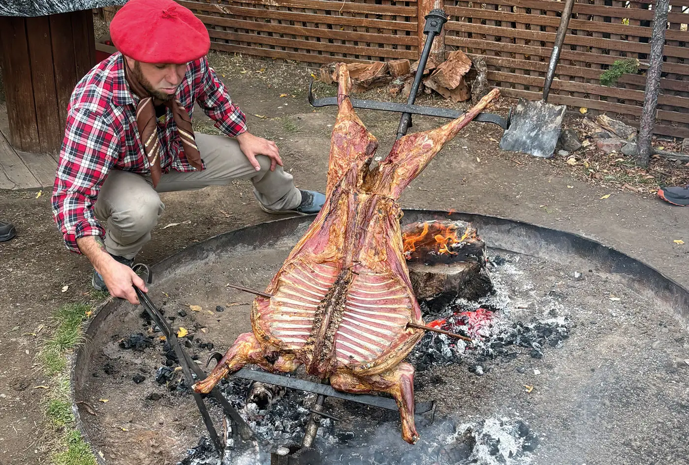 Am Nachmittag wartet das kulinarische Highlight: ein echtes Asado. Das Fleisch kommt direkt vom Grill, duftet rauchig und schmeckt fantastisch. Dazu ein Glas chilenischer Rotwein, der in der Nachmittagssonne doppelt so gut mundet. Wir essen, lachen, tauschen Geschichten aus und spüren zum ersten Mal richtig: Chile hat seinen ganz eigenen Zauber.