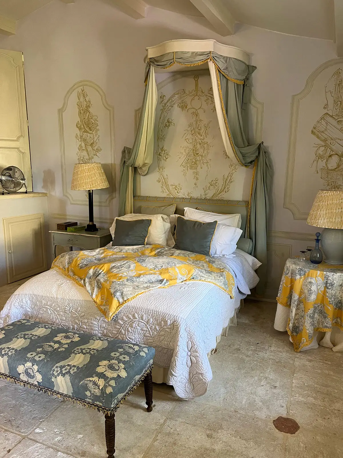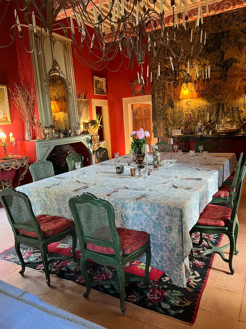 Im Château Victor La Coste empfängt mich Costas, der Besitzer. Er und Allison, seine Partnerin, begrüßen mich herzlich. Ihre Geschichte ist außergewöhnlich. Er Grieche, sie aus Newcastle, beide einst verheiratet und mit Kindern, verloren sich nie ganz aus den Augen. Vor 18 Jahren fanden sie wieder zusammen und entschieden sich für ein neues Leben in Paris und Provence. Heute führen sie gemeinsam das Château aus dem Jahr 1543, empfangen Gäste und veranstalten Kochkurse.